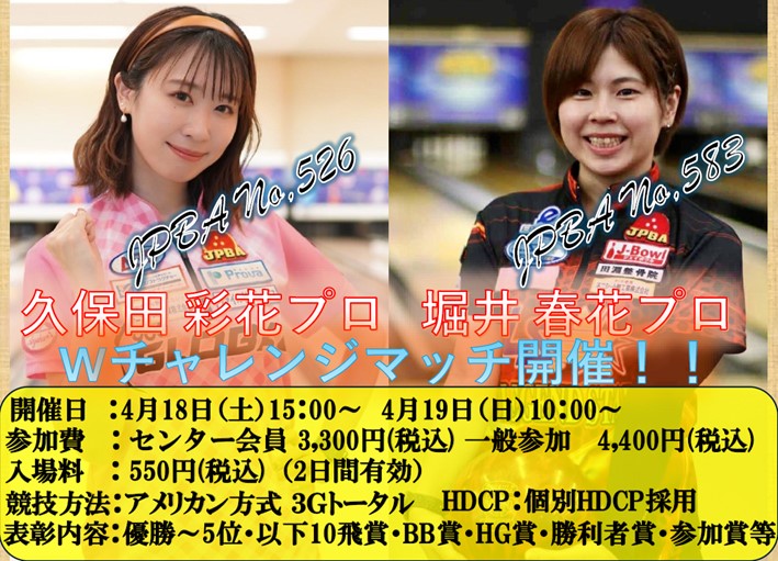 | 2026/3/13 | 久保田彩花プロ & 堀井春花プロ Wチャレンジマッチ開催のお知らせ ![]() |